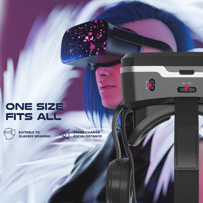 ✅ COMFORTABLE AND LIGHTWEIGHT: Innovative design with super light ABS plastic and sturdy build quality. With an adjustable headband, head support, and foam face cushion, it is completely comfortable to wear. There is also a built-in IPD adjustment feature and a screen distance adjustment.