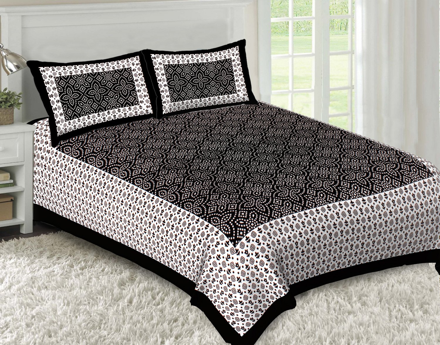 Sanganeri Mart Cotton Bed Sheet For Double Bed With Two Pillow Cover Size 85 x 95 Inch