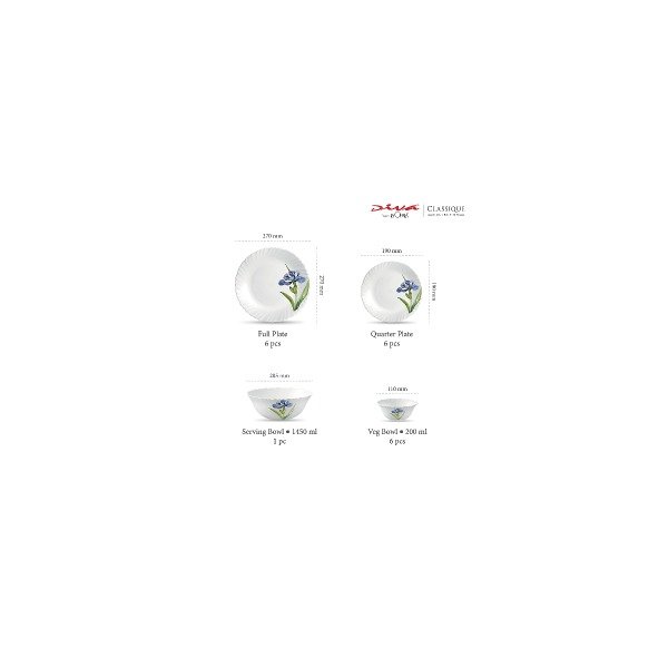 Introducing the exquisite LAOPALA Opalware Dinner Set 19 Piece in the stunning royal iris design! Made with premium quality opal ware, this set is durable, lightweight, and chip-resistant, making it perfect for everyday use. The set includes six full plates, six quarter plates, and six vegetable bowls, all elegantly adorned with the royal iris pattern. The smooth surface of the opal ware ensures easy cleaning, while the scratch-resistant surface makes it a long-lasting addition to your dinnerware collection. This 19-piece set is ideal for a small family, and it's dishwasher-safe for hassle-free cleaning. Elevate your dining experience with the LAOPALA Opalware Dinner Set 19 Piece and impress your guests with its timeless beauty. Order yours today and add a touch of elegance to your dining table!
