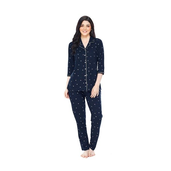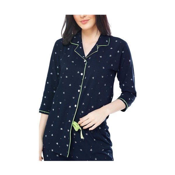 Upgrade your sleepwear collection with our Women's Cotton Star & Dot Printed Night Suit Set of Shirt & Pyjama and experience comfort and style like never before!