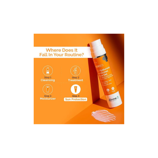 NON-GREASY & FRAGRANCE-FREE: Say goodbye to the greasy and oily finish of typical sunscreens. The Derma Co. 1% Hyaluronic Sunscreen Aqua Gel is fragrance-free and doesn’t clog your pores. The presence of 1% concentration of Hyaluronic Acid in this sunscreen makes it quick to absorb and provides intense hydration to the skin. Extremely lightweight in nature, the sunscreen dissolves like water, hence the name ‘Aqua Gel’.