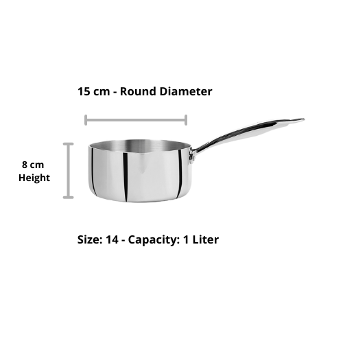 Doniv Titanium Triply Milk Pan inner layer is made of Food Grade Stainless Steel (SS304), middle layer is aluminium for energy efficiency & quick, uniform heat distribution. Outer (SS430) makes it compatible on gas & induction for modern day cooking. What more one requires than a Smart Cookware from Doniv !!