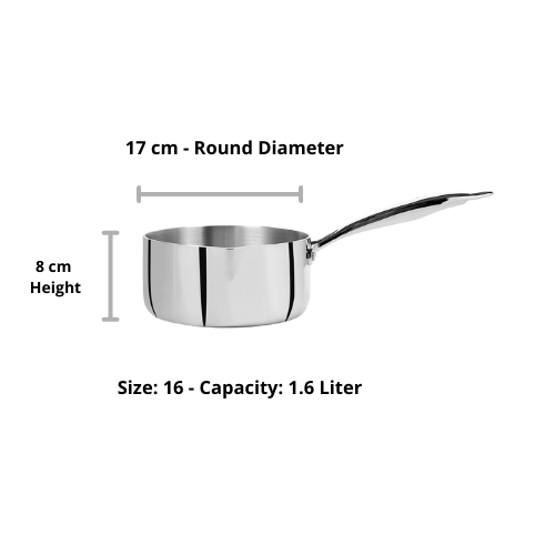 Doniv Titanium Triply Milk Pan inner layer is made of Food Grade Stainless Steel (SS304), middle layer is aluminium for energy efficiency & quick, uniform heat distribution. Outer (SS430) makes it compatible on gas & induction for modern day cooking. What more one requires than a Smart Cookware from Doniv !!